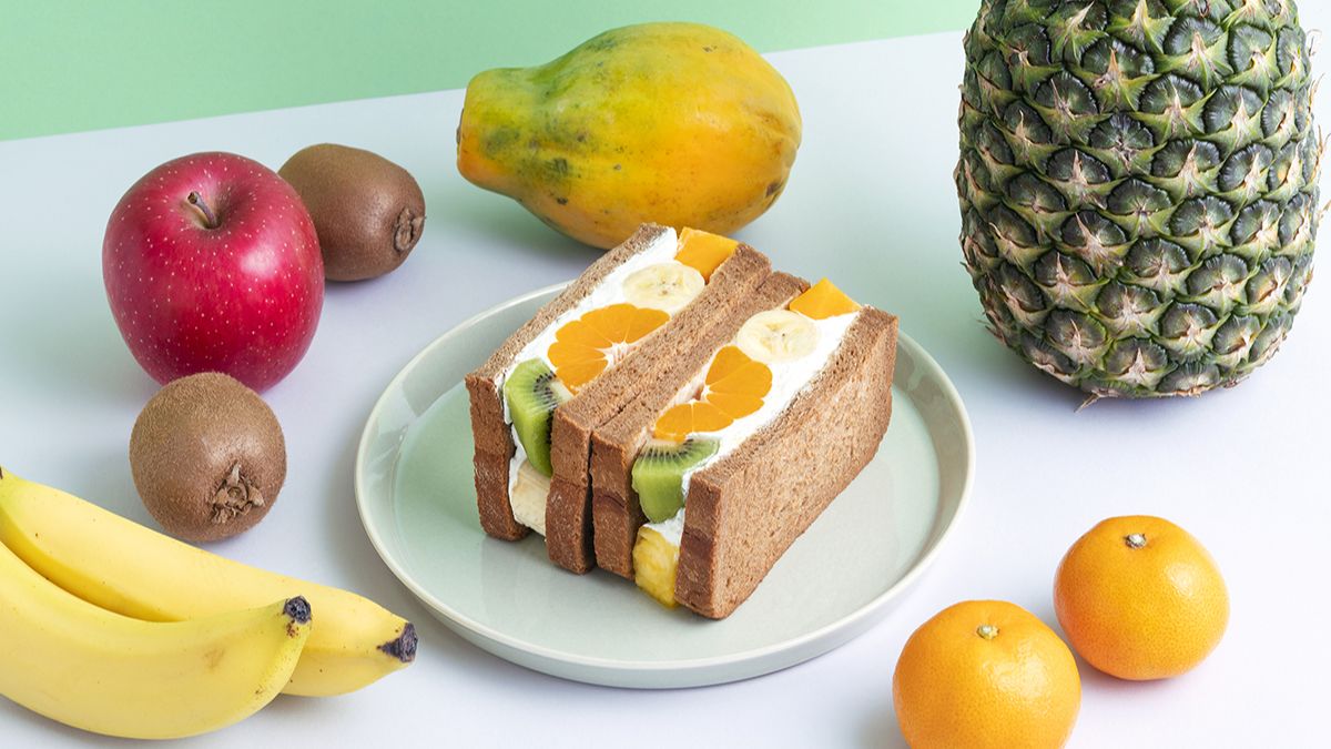 フルーツサンドで朝くだもの!奈良の果実園による季節の果物6種がぎっしり詰まったサンドイッチです。