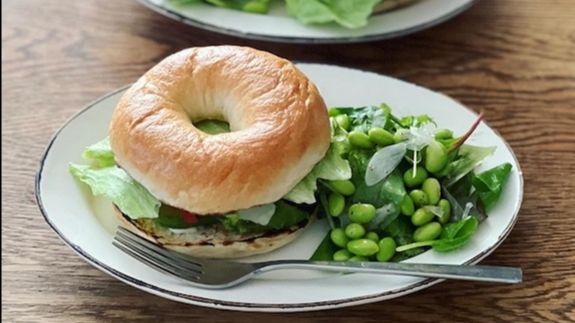 人気ベーカリーで、野菜たっぷりのサンドイッチや焼きたてパンの朝食が楽しめます。