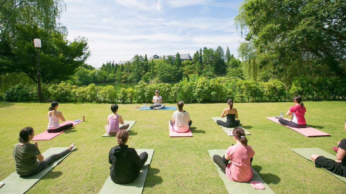 登録有形文化財の老舗料亭「菊水楼」のガーデンで、朝から気持ちよくピラティス体験。特別朝食付きのプランです。