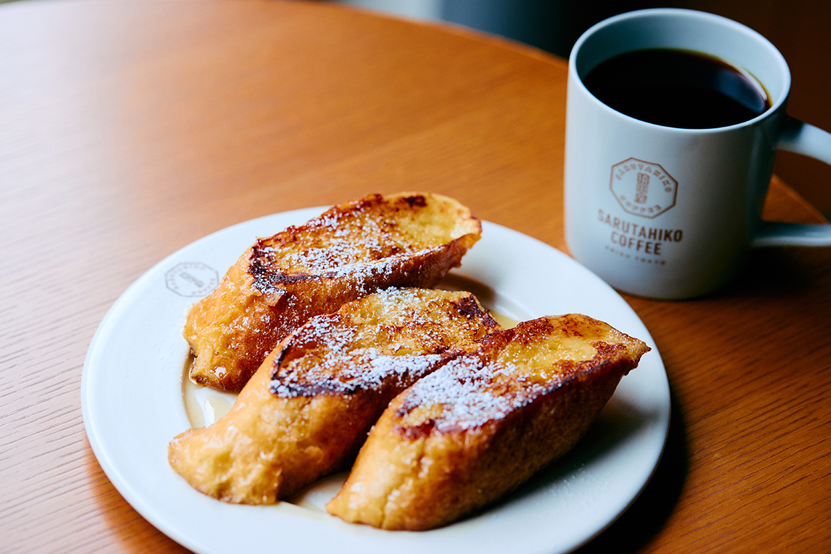 外はカリッ、中はもっちり食感のフレンチトースト。ハンドドリップのスペシャルティコーヒー(別料金)にぴったりです。