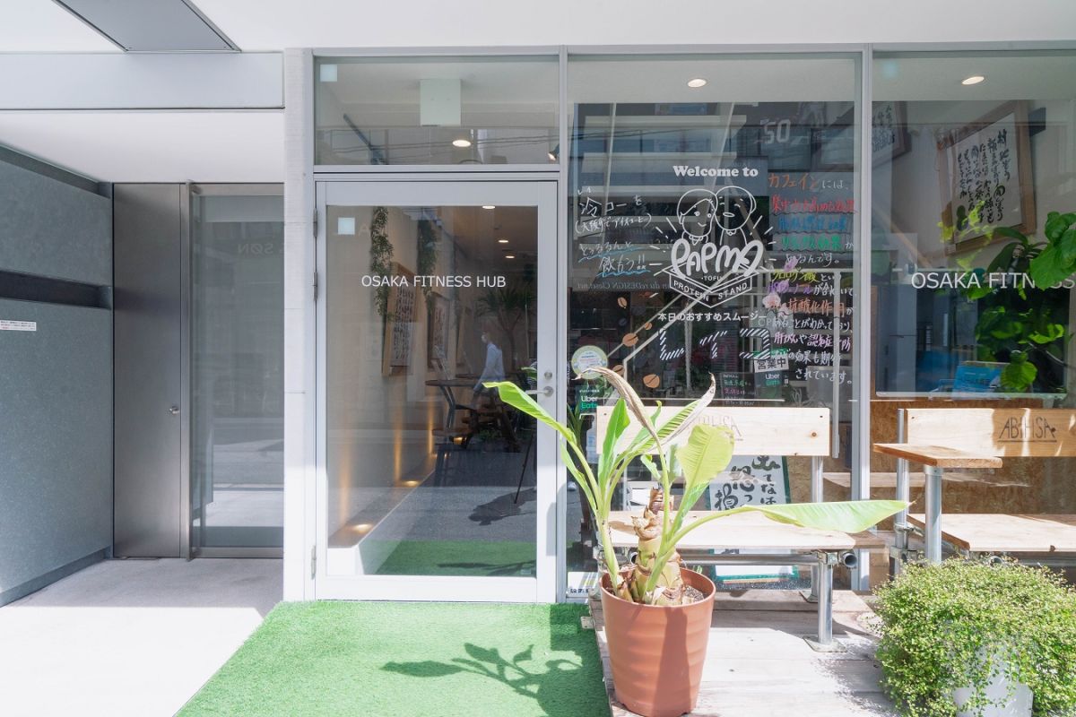 「豆腐スムージー PAPMA」があるのは、アパレルやインテリアなどおしゃれなショップが軒を連ねる南堀江エリア。パーソナルトレーニングジム「OSAKA FITNESS HUB」の1Fに位置しています。