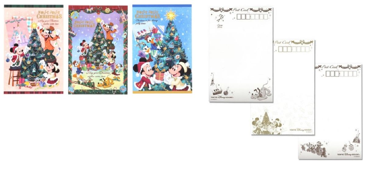 ポストカードやきんちゃくにはミッキーやディズニーの仲間たちがクリスマスツリーの飾り付けをしている様子や、シンデレラ城やアクアスフィア、チュロスなどがオーナメント風に描かれているなど、東京ディズニーリゾートのワクワクするような楽しいクリスマスの雰囲気がいっぱい。