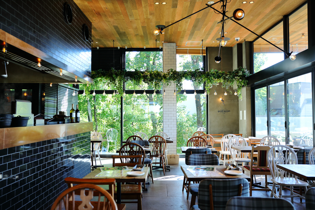 肉料理店を中心にさまざまな業態で展開している「good spoon」ですが、こちらの店舗は公園の雰囲気にマッチしたニューヨークダイナーのようなおしゃれな空間で、カフェ、ランチ、BBQなどさまざまなシーンに対応しているところが魅力。開放的なテラス席でのBBQをチョイスすれば、公園の歴史散策とあわせてアウトドアな一日を満喫できます。