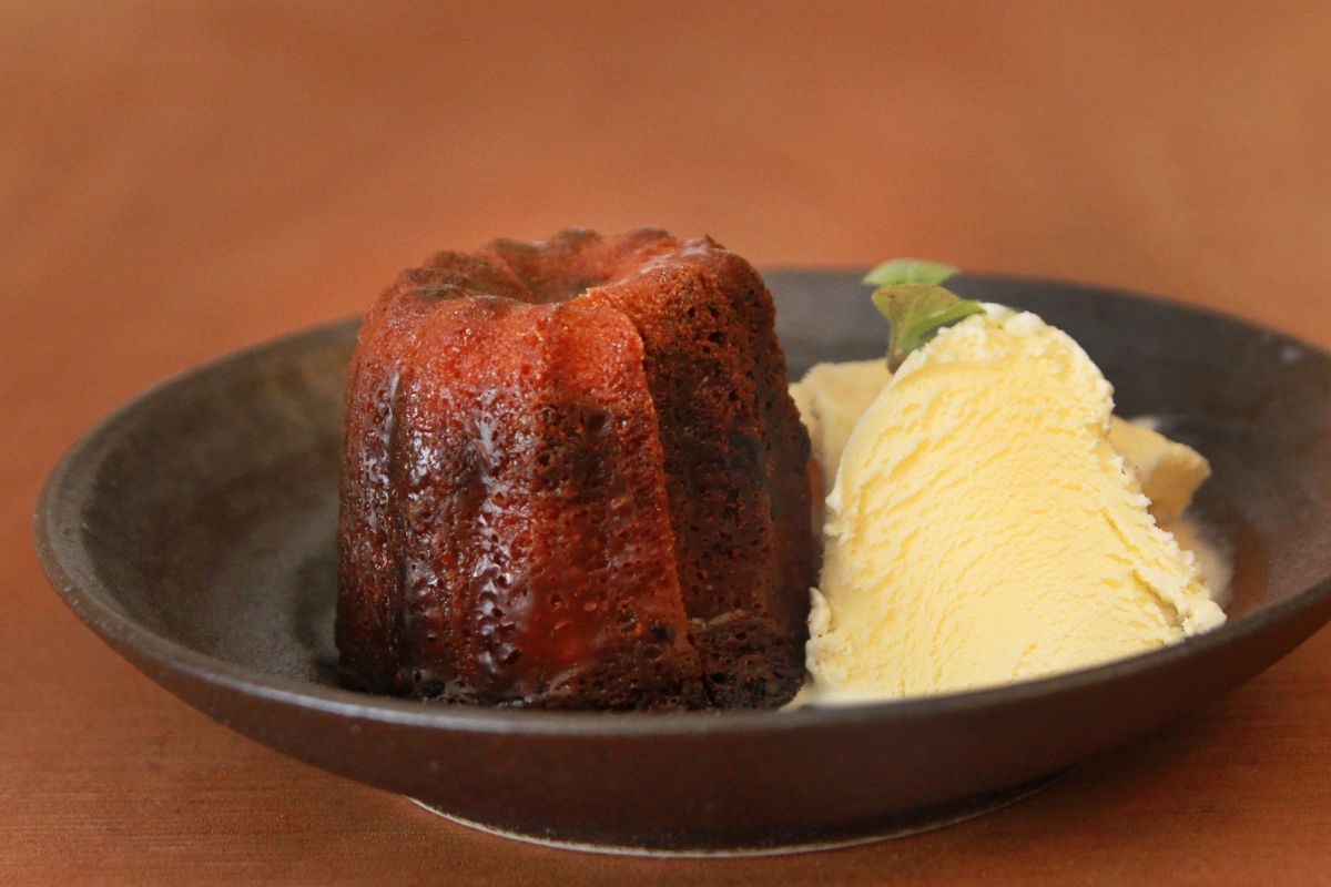 プレーンタイプのカヌレなので、アイスクリームを添えたり、リキュールをかけてみたりとアレンジが楽しめます。写真はカヌレをオーブントースターで温め、アイスクリームを添えたもの。温かいものと冷たいものを同時に味わうのって、おいしいですよ。