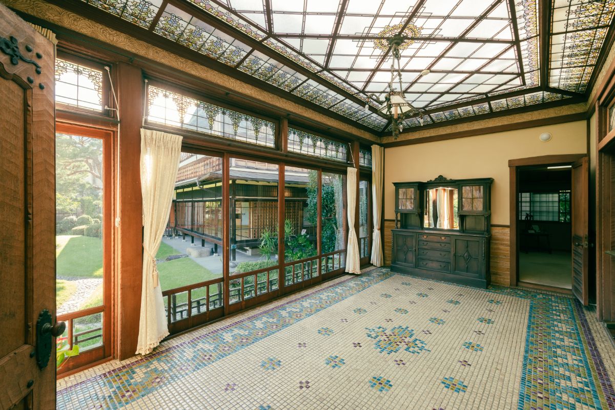 廊下を渡ると、先ほどとは異なる趣向が凝らされた「玉姫」に到着。入ってすぐにサンルームがあり、続くダイニングと客間を見ることができます。