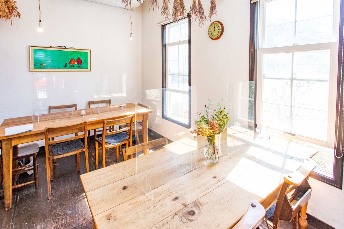 店内のテーブルや椅子はアンティーク家具で揃えられ、ひとつひとつに個性が詰まっています。各テーブルには可愛らしい花が飾られ、オーナー夫妻の気遣いが感じられます。子ども連れもOKなので、家族で来てもゆっくりと過ごすことができますよ。