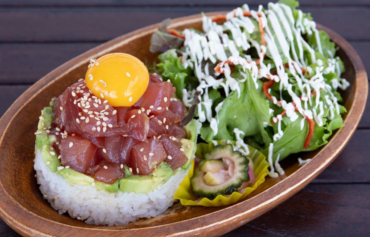 醤油ベースのオリジナル特製ダレに漬け込んだ生まぐろを贅沢に使ったアヒポキライスは「食べると肌が5歳若返る」と話題のアローカナの卵もトッピングされ、見た目も栄養バランスも◎。