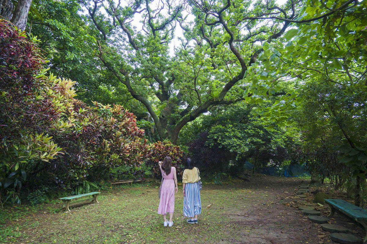 「首里金城町石畳道」の先に自生している5本のアカギの大木が、「首里金城の大アカギ(しゅりきんじょうのおおあかぎ)」です。『琉球国由来記』にも登場する「内金城御嶽(うちかなぐすくうたき)」の境内にあり、こちらも戦火をまぬがれ、樹齢200年以上といわれています。昭和47年(1972)の本土復帰とともに国の天然記念物に指定。地域の信仰の場でもあり、あたりは神聖な空気が漂っています。