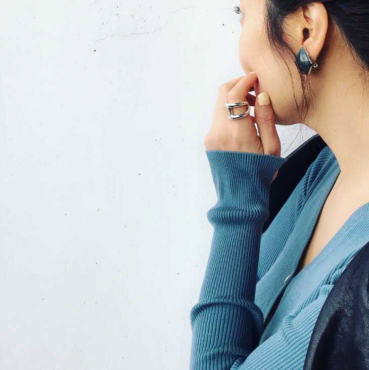 せっかく気持ちのよい外での予定なので、ダークカラーでまとめるよりも、春らしいクリーンな色使いを楽しみたい。デニムスカートの色に合わせたサックスブルーのカーディガンで、上下ワントーンのコーディネートに。アクセサリーは、軽やかなシルバー系を合わせました。実はイヤリングも色石を合わせて。ネイルはクリームイエローで、手もとから明るい印象に。