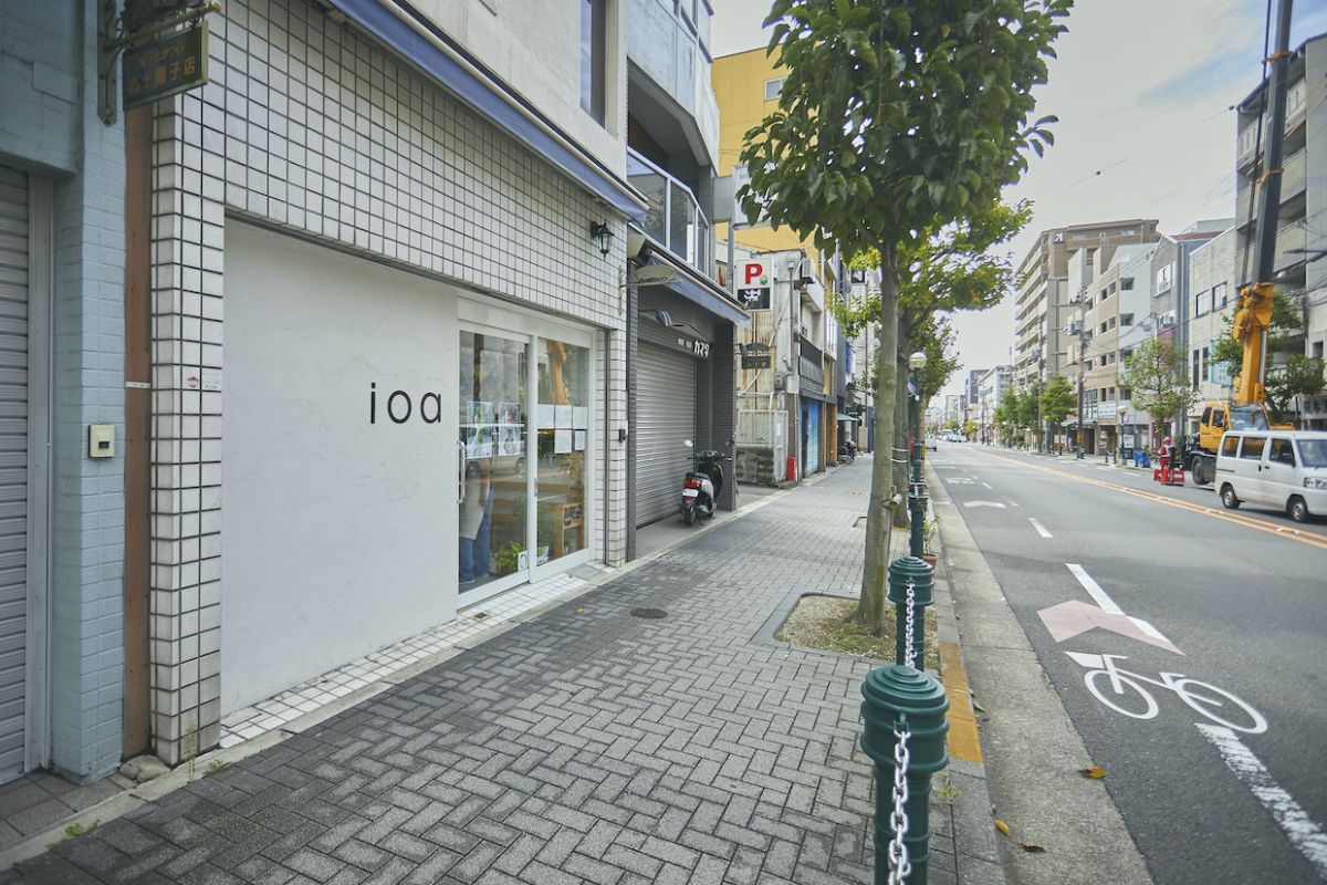 白い背景に並ぶ美しいパフェやスイーツの写真に魅了されて訪れたのは、西陣エリア、千本通沿いにある「cafe ioa(カフェ イオア)」。かつて皇居(大内裏)の入口である朱雀門から平安京の入口となる羅城門まで京都の中心を貫いた朱雀大路が現在の千本通であり、京都の伝統産業・西陣織の生産地としても知られる歴史ある街には、今も昔も名店が揃います。