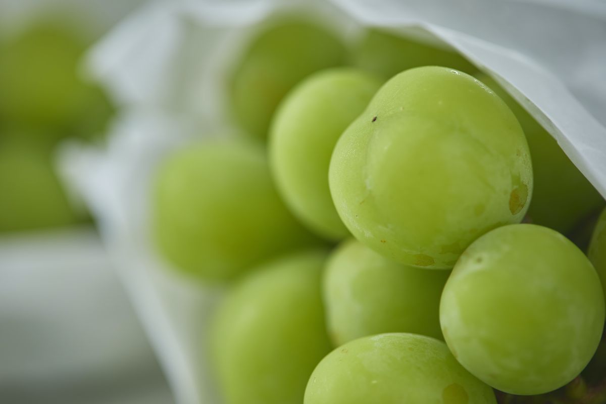 使っているのは、農園から直送されてくる山梨県産のシャインマスカット。一番大きいものはピンポン玉くらいありそう。