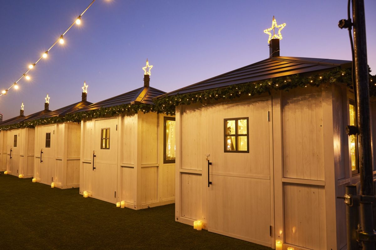 個室スペースを貸し切り利⽤できる「プレミアムラウンジ」が、クリスマスツリーと港が望めるエリアに5棟限定で今年も登場! 人ごみを避けたい人は必見です。