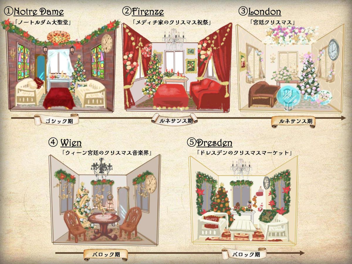 今年のイベントコンセプト「Time」にちなんで、内装は「時を巡るクリスマス」をコンセプトに設定。西洋美術のゴシック期・ルネサンス期・バロック期をイメージしているそう。