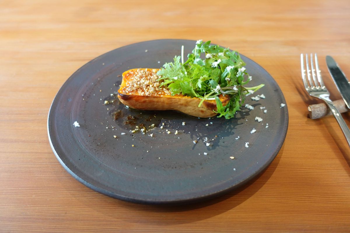 バターナッツカボチャ×焦がしバターと蜂蜜のソースがとろける甘さなのですが、そこに中東の定番スパイス・ザタールがかかっていて、とってもいいアクセントになっていました。ああ、おいしい…。