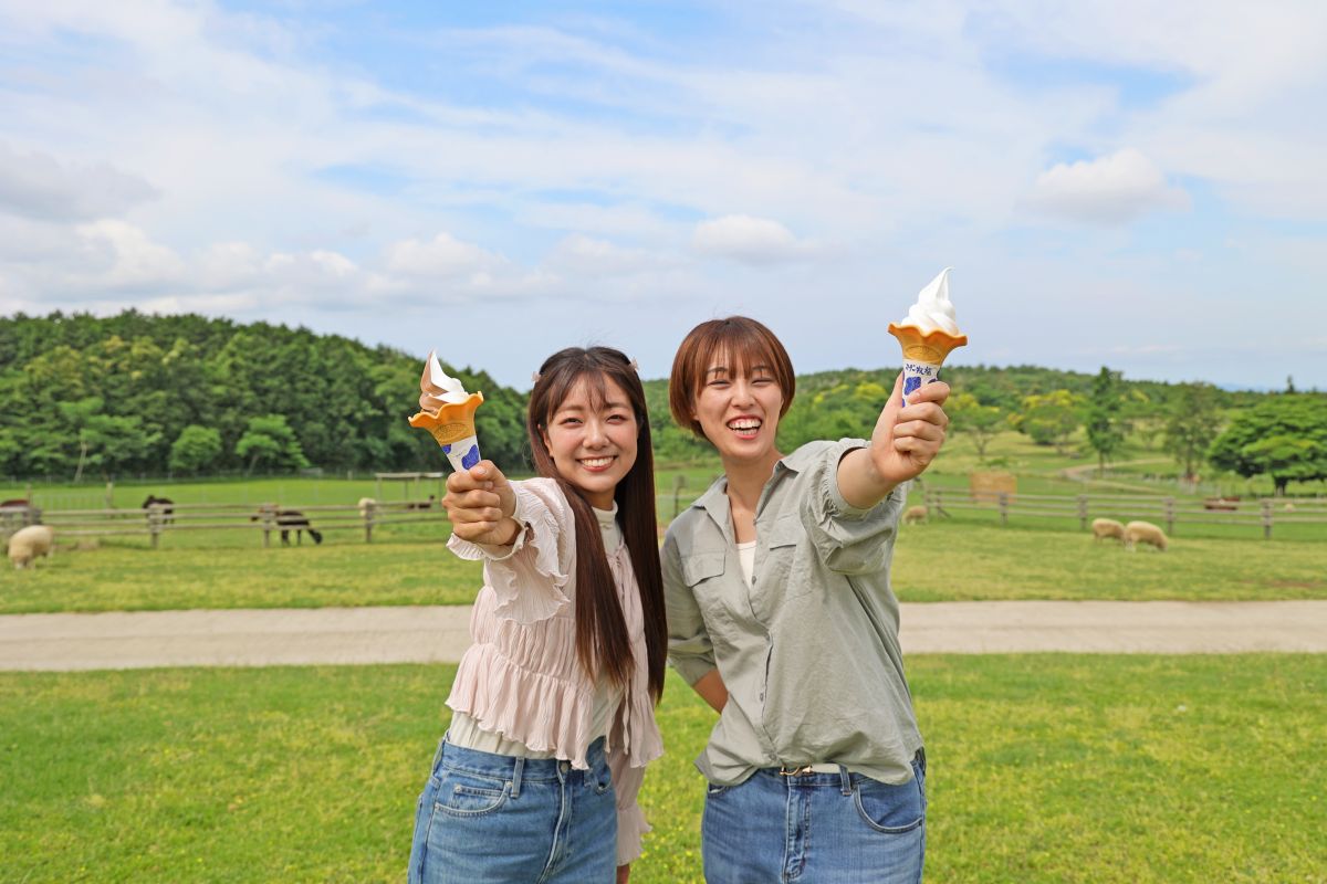牧場に来たら必ず食べたいのがソフトクリーム。ほかにもスイーツメニューがいろいろありますよ。