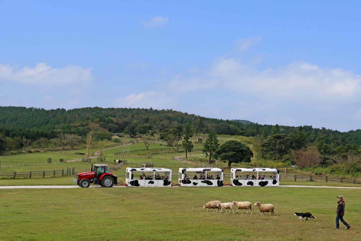 エサやり体験を終えてトラクタートレインに乗り込むと、次に待っていたのは牧羊犬のパフォーマンス。一本橋を渡らせるなど、羊を上手に目的地に誘導する様子は感動的でした。