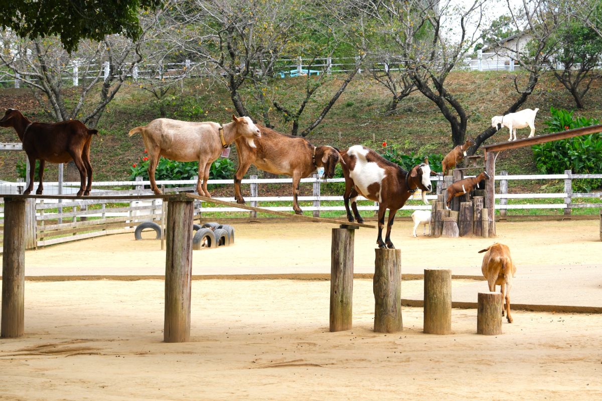 ヤギが大好きという一本橋も設置されていて、橋の上にはヤギの姿が。ただ、じっと立っているだけですが、微笑ましい光景ですね。