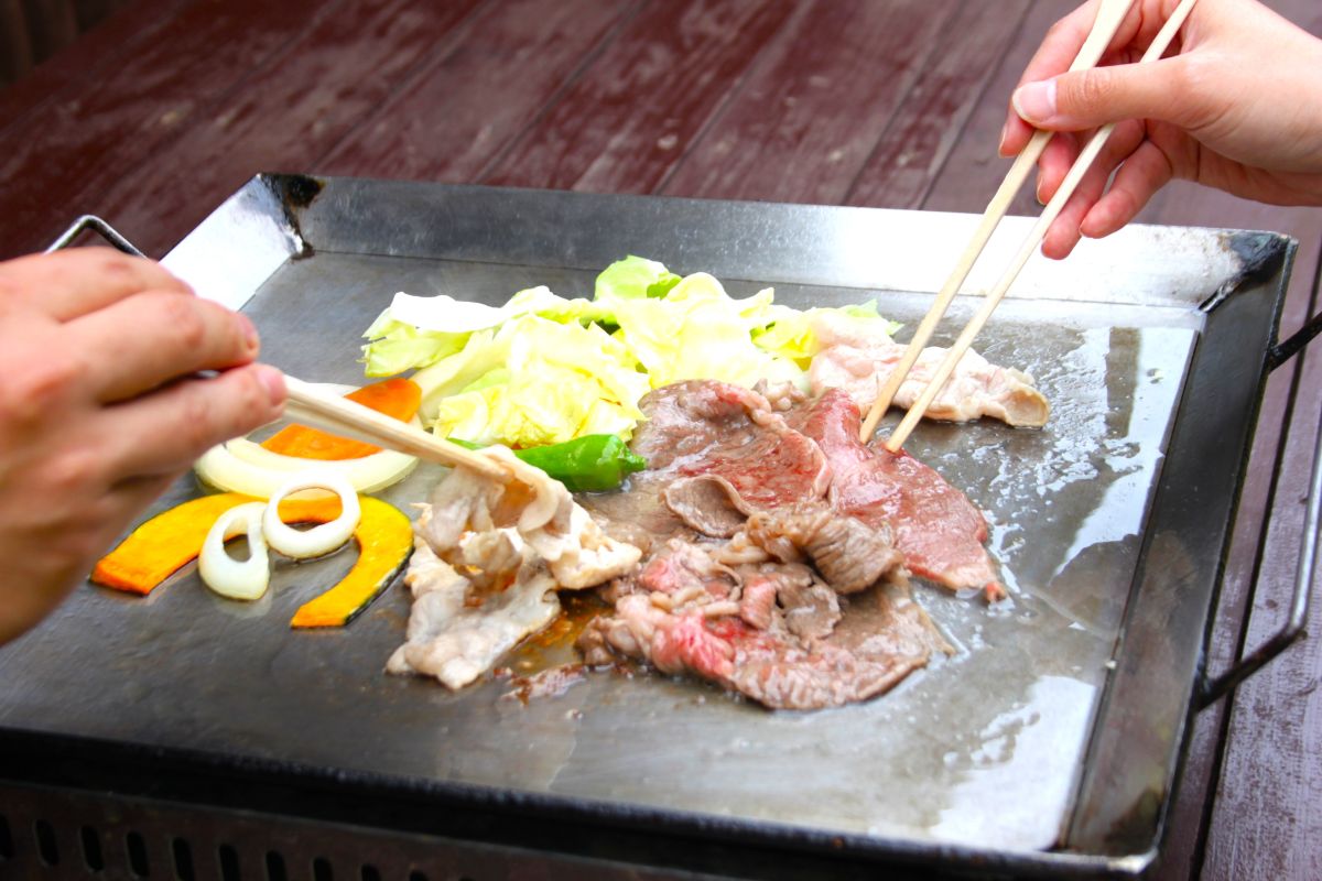 成田ゆめ牧場で一番人気なのがバーベキューハウスで食べるバーベキュー。特注のコンロと鉄板を使った本格派で、お肉はなんと黒毛和牛を使用。部位にもこだわっていて、バーベキューに最も適したものを仕入れているそう。みんなでワイワイと楽しめます。