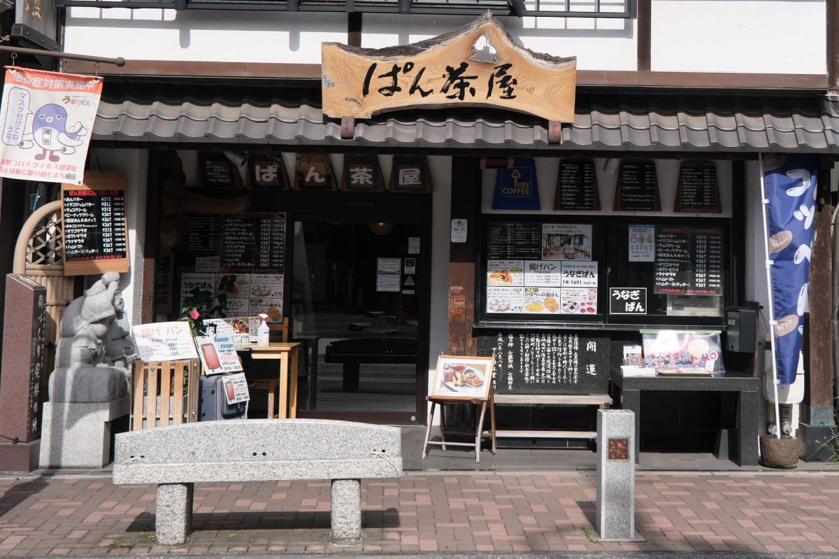 お次は「下田康生堂 ぱん茶屋」です。元々ウナギの老舗だった店が営むベーカリー&カフェで、名物はうなぎパン。パンの中にウナギのかば焼きがたっぷりと入っていて、隠し味のホワイトソースと刻んだ鉄砲漬との相性も抜群です。和洋折衷の奥深い味を楽しめますよ。