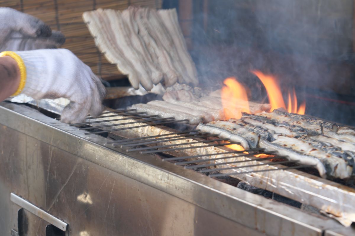 店先ではウナギをさばいたり焼いたりする様子を見ることができます。周囲にはウナギを焼く煙とおいしそうな匂いが立ち込めていて、煙だけでごはんを食べられるというのも妙に納得してしまいます。