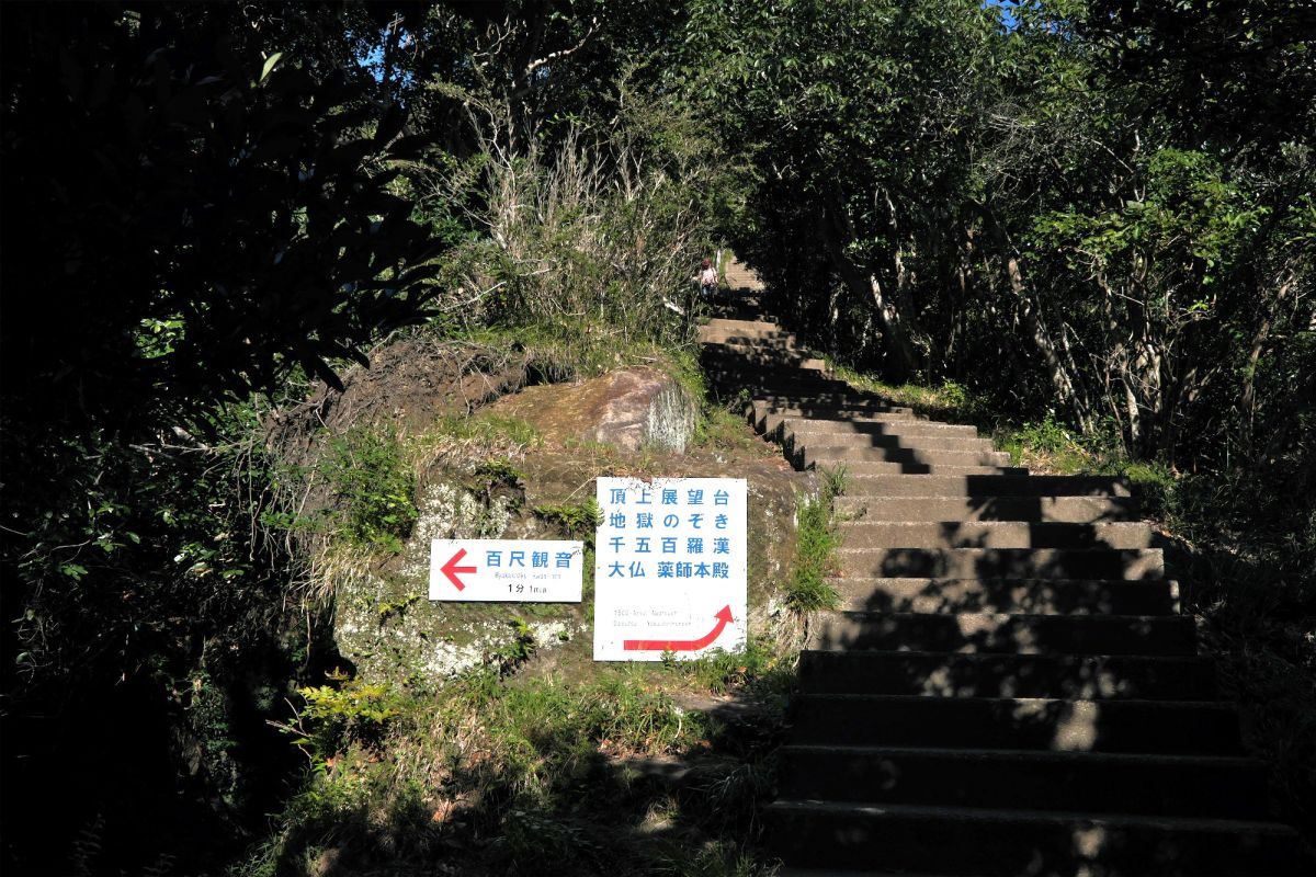 山頂エリアから大仏広場までは、まっすぐに階段を下りるルートと、羅漢エリアを通るルートがあります。今回は羅漢ルートへ。