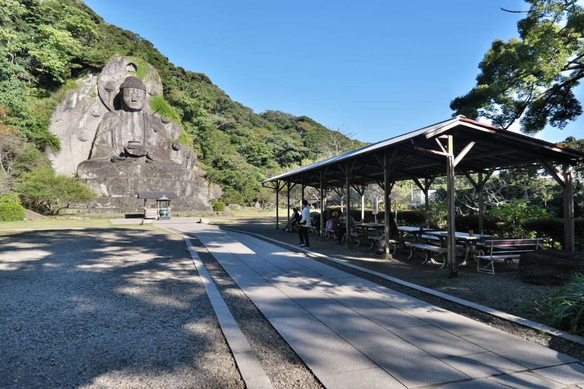 房総半島南部、東京湾に面してそびえる鋸山は、東京湾を見渡す絶景スポットとして知られています。同時に「地獄のぞき」や日本一の大仏様など、スリルや御利益も得られるという人気のスポットなんです。大仏様がある乾坤山日本寺(けんこんざんにほんじ)の境内は山の中腹から山頂にかけて広がっているため、アップダウンはかなりきつめ。しっかりした靴と服装で訪れましょう。