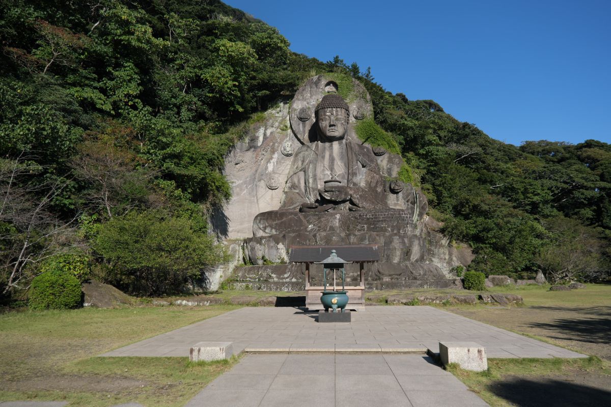 大仏様の高さは、台座を含めると約31m。磨崖仏としては日本最大の大仏様です。奈良東大寺の大仏が約18m、鎌倉の大仏が約13mなので、比較にならないくらい大きいことがわかります。