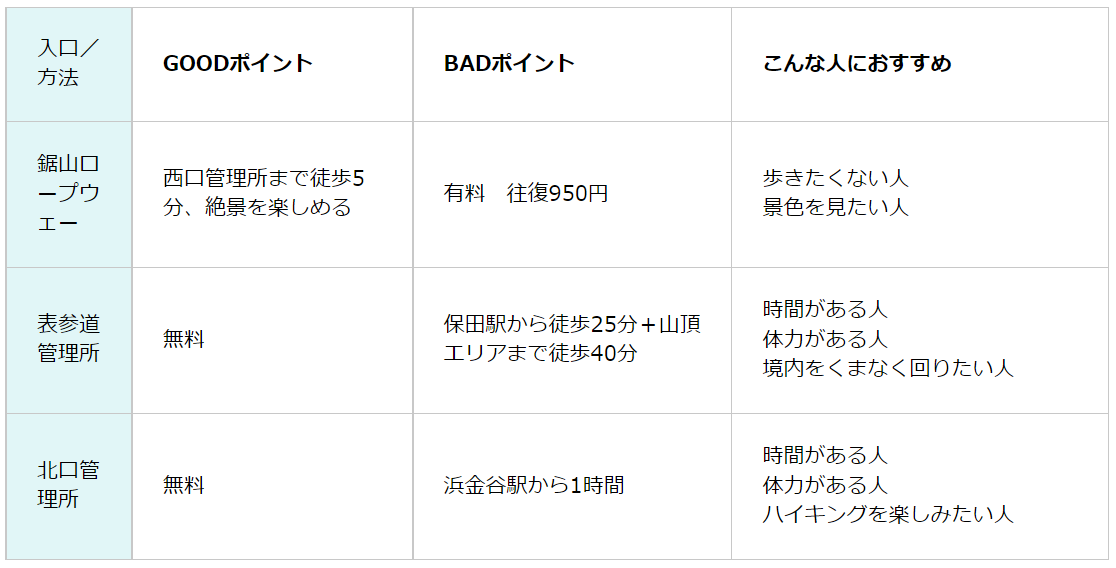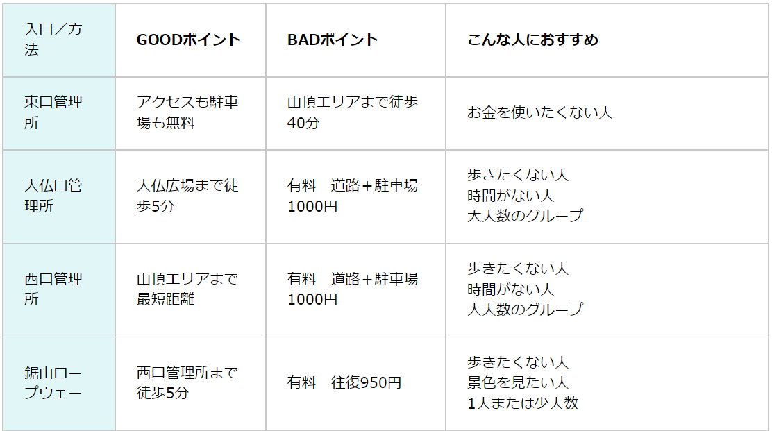 入口は5カ所。山頂へはロープウェーがおすすめ