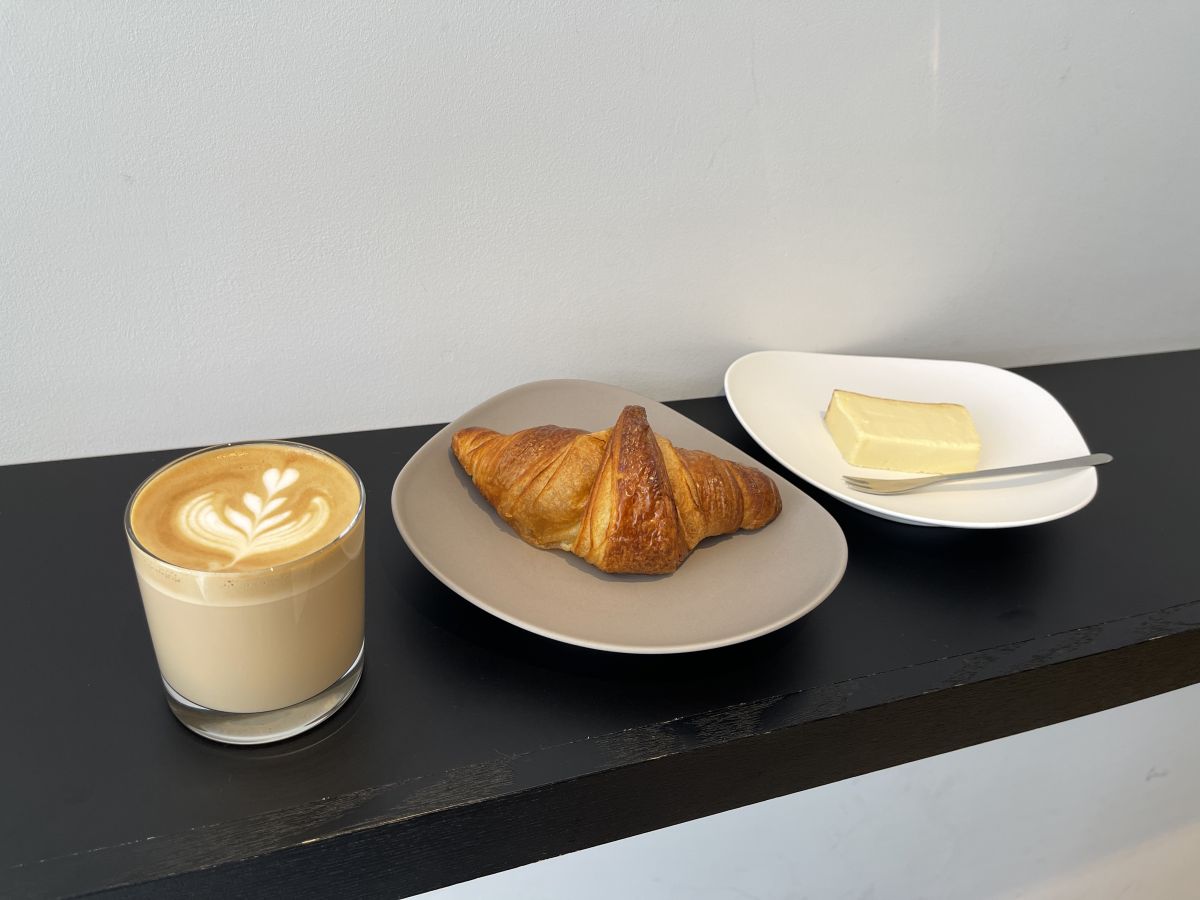 今回はおすすめメニューのカフェラテ、クロワッサン、レアチーズケーキを注文!