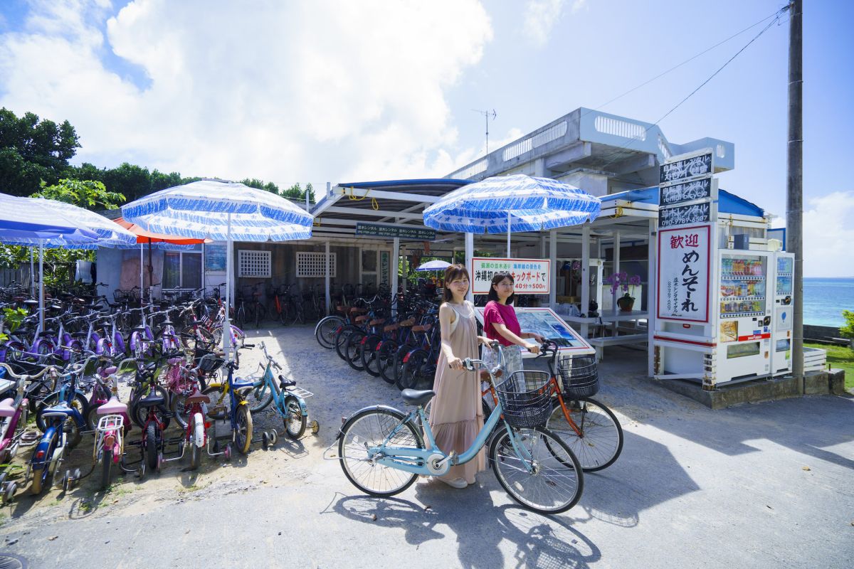 集落入り口近くにある「並木レンタサイクル(なみきれんたさいくる)」では、通常の自転車(2時間300円)のほか、電動自転車(1時間500円)、電動キックボード(40分500円)も借りられます。