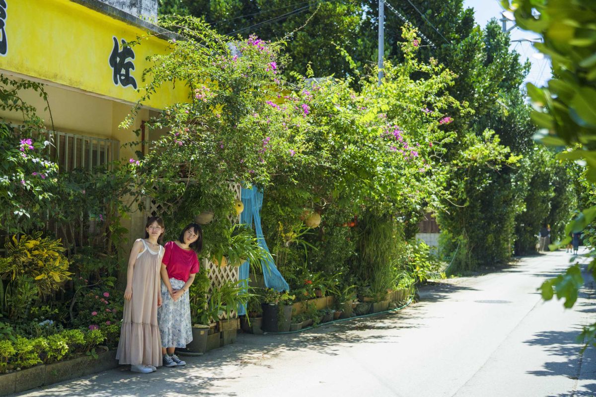 昔ながらの家々が立ち並ぶ集落の合間を縫うようにフクギ並木のトンネルが続く「備瀬のフクギ並木」。フクギとは「福木」と書いて“福を呼ぶ木”ともいわれています。道中は映画のワンシーンのような印象的な風景があちらこちらで見られます。木漏れ陽がやさしく降り注ぐ沖縄の原風景のなかをのんびり散策して、ノスタルジックな思い出づくりを!