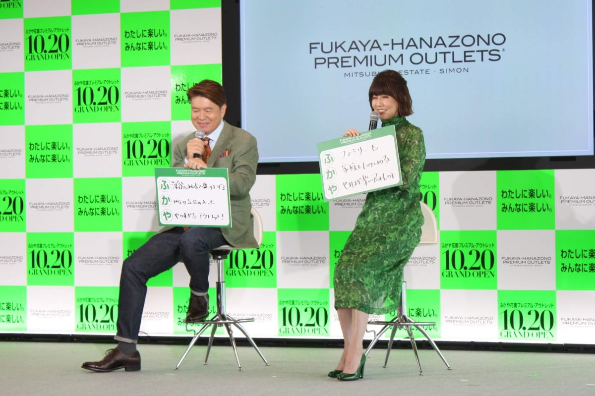 開業記念イベントではまず、三菱地所・サイモン株式会社 代表取締役社長の山岸正紀さん、ふかや花園プレミアム・アウトレット支配人の相本康裕さんから挨拶、施設紹介がありました。