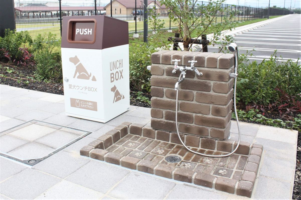 アウトレットの共用部には足洗い場や排泄物BOXなどを設置。ショップごとに入口にペットの入店が可能かどうか表示されているので、ペットを連れてのショッピングも気兼ねなく楽しめそうです。