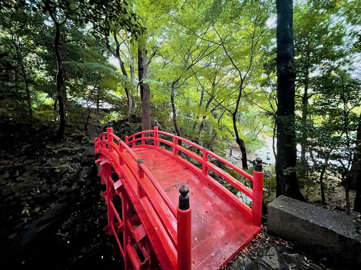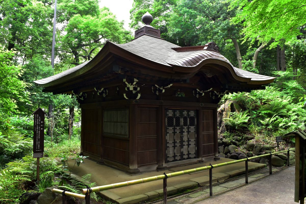 「通天橋」の先にある小さなお堂は、光圀が建てた「得仁堂」で、園内で最古の建物。光圀が『史記』の「伯夷列伝」を読んで感銘を受け、話に登場する伯夷・叔斉の木像を安置していたのだそう。現存する木像は、東京都によって別途保管されています。
