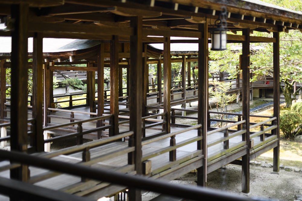 みどころが多いので鑑賞ポイントを解説しながら進みましょう。まずは大門から参拝口に入り、宸殿から「村雨の廊下」を抜けて御影堂へ。この廊下は柱を雨に、折れ曲がる回廊を稲妻に例えて造られた木製の通路で、時代劇の撮影などにも使われています。