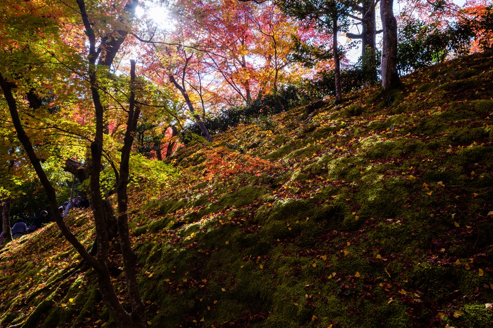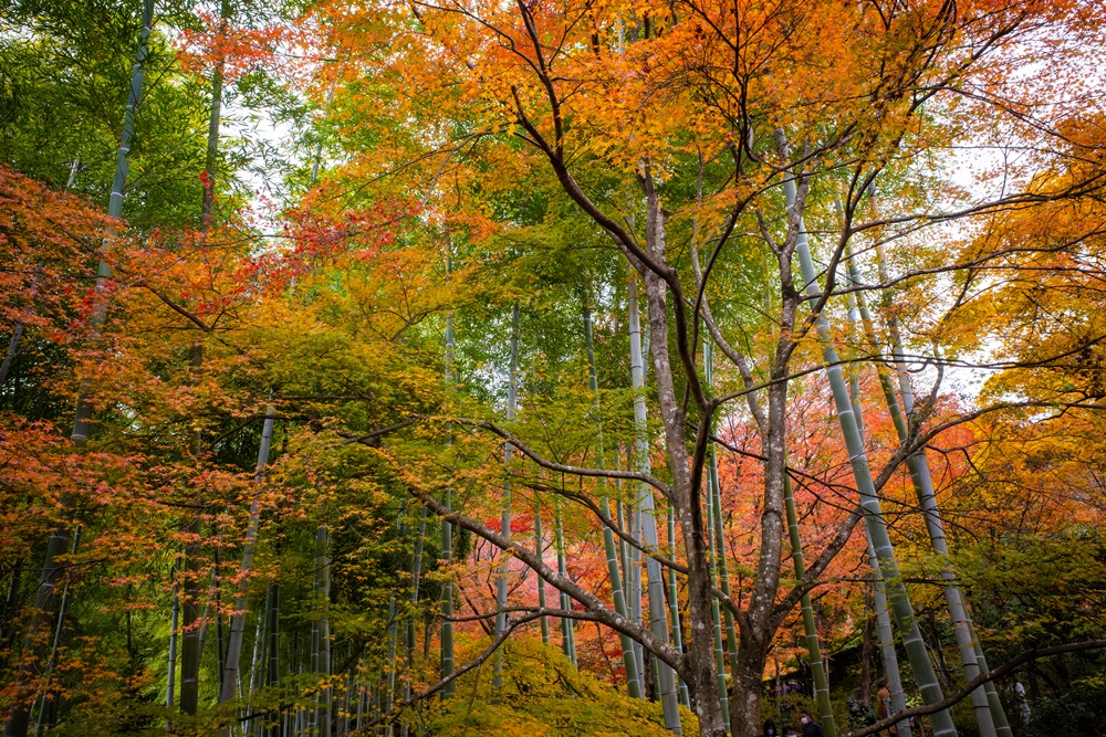 境内には200本あまりのカエデが植えられ、秋は山全体が紅葉に包まれる常寂光寺。標高が少し高いため紅葉のピークは遅めで、11月中旬~12月上旬に見ごろを迎えます。