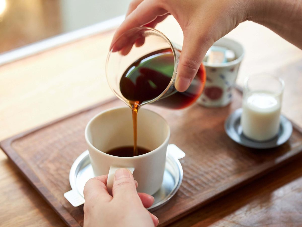 うれしいことに、ビーカーにはあらかじめ“おかわりの2杯目”が注がれた状態でサーブされます。1杯目はブラックで、2杯目はミルクを入れていただくのもGood!