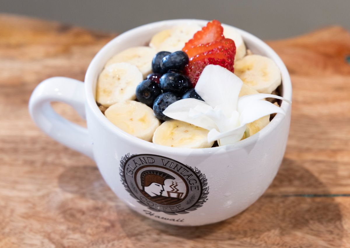 なかでもぜひ食べてほしいのが、見た目にも美しいアサイボウル。アイランド・ヴィンテージの看板メニューです。「オリジナル・アサイボウル」の他、ホームメイドのリリコイハニーがのった「リリコイ・モアナボウル」、ワイアルア産ダークチョコレートやホームメイドのココナッツピーナツバターがのった「ワイアルア・モアナボウル」など、他ではお目にかかれないメニューもあります。フレッシュフルーツやオーガニック・グラノーラ、ハワイアンハニーなどを使用し、食材にもこだわっています。