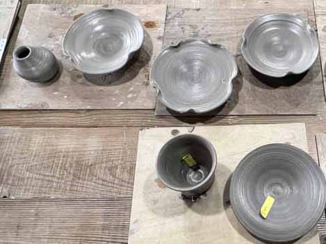 思い思いの器が形作られました。体験はここで終了ですが、ここから調整や乾燥をし、自分で選んだ釉薬をかけて焼成してもらいます。約2ヶ月後に自宅へ届けられるので、完成が楽しみです。