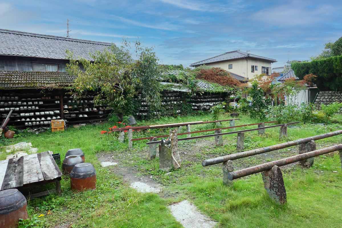 土間のある製陶所内や、作品が並ぶ中庭はどこかノスタルジック。リラックスして体験に臨める空間です。