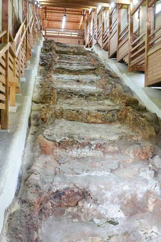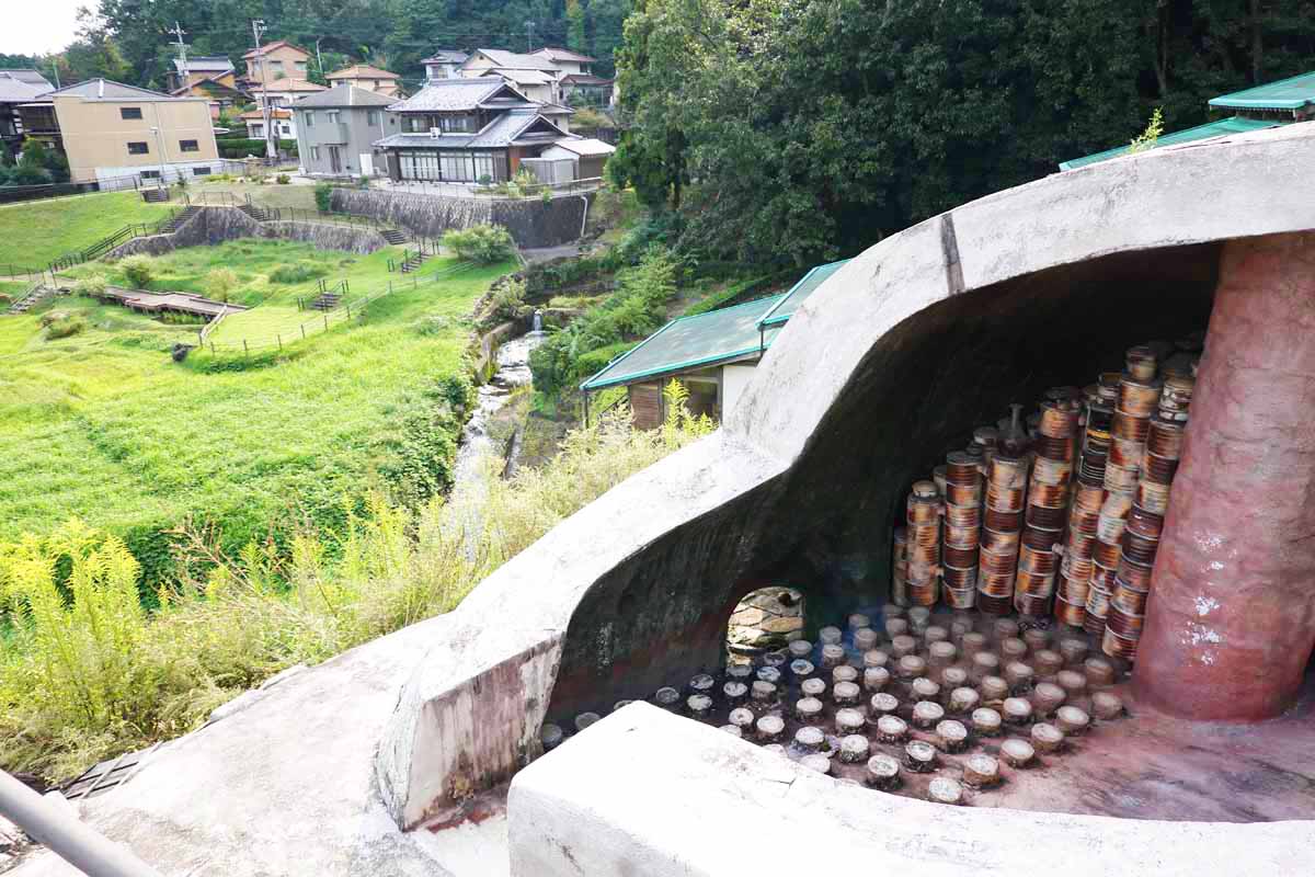 車で8分ほど移動し、「織部の里公園」へ。日本一の焼き物の街である土岐の約400年前の様子がわかる場所で、一帯が国指定史跡となっています。「連房式登窯」や「大窯」などの地上式の窯は当時の最新技術で、ここで作られた焼き物は全国へ運ばれました。