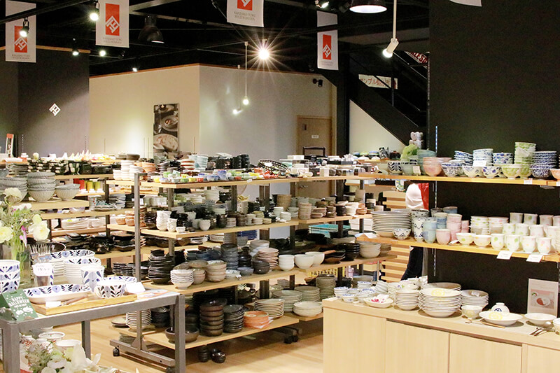 車で北へ10分ほど移動します。「織部ヒルズ」は広大な敷地に美濃焼を扱う卸が一同に集まるエリア。小売りを行う店もあり、買い物が楽しめます。毎年GWには日本三大陶器祭りの一つでもある土岐美濃焼まつりも開催され、30万人もの来場者が訪れるそうです。