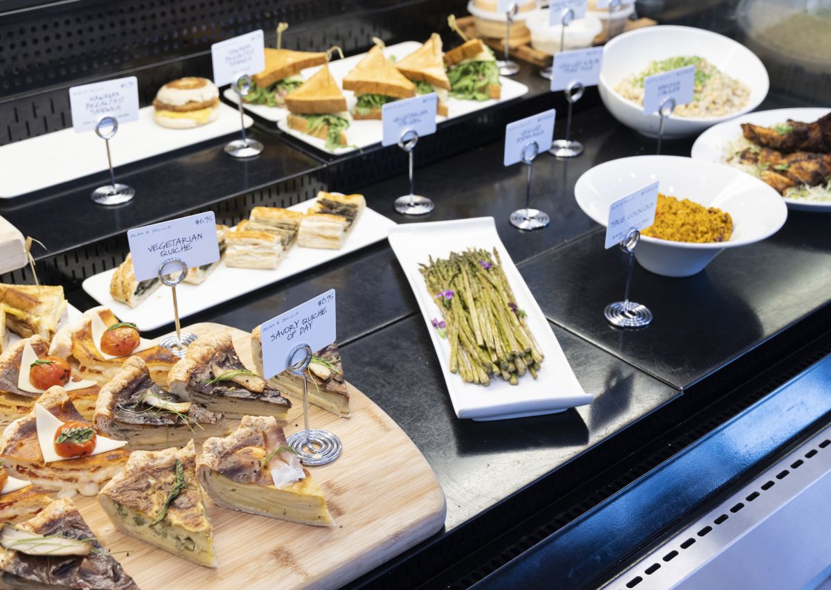 色とりどりのスイーツや美しいデリが並ぶ店内