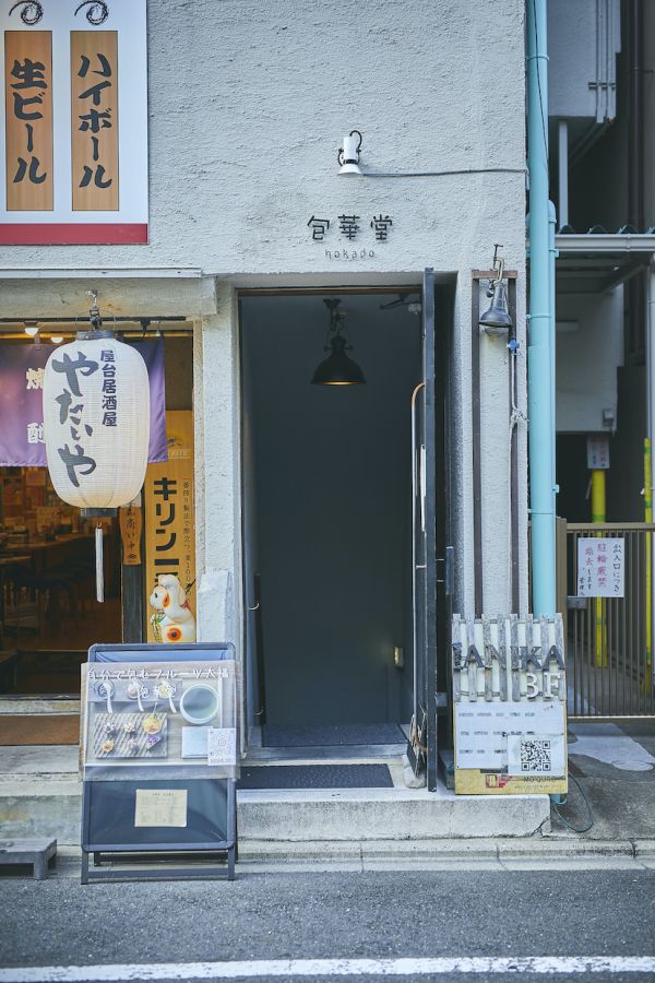 ビジネス街、烏丸御池の一角にある「包華堂」。1階に飲み屋さんがあるビルの地下という、まさかフルーツ大福の専門店があるとは思わない謎めいた場所に店舗の入り口があります。