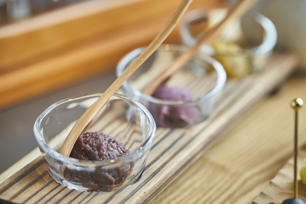 今回選んだのは、「つぶあん」と「紫芋あん」。フルーツから果汁が出てくるので、餡子は少し硬めに練ってあります。