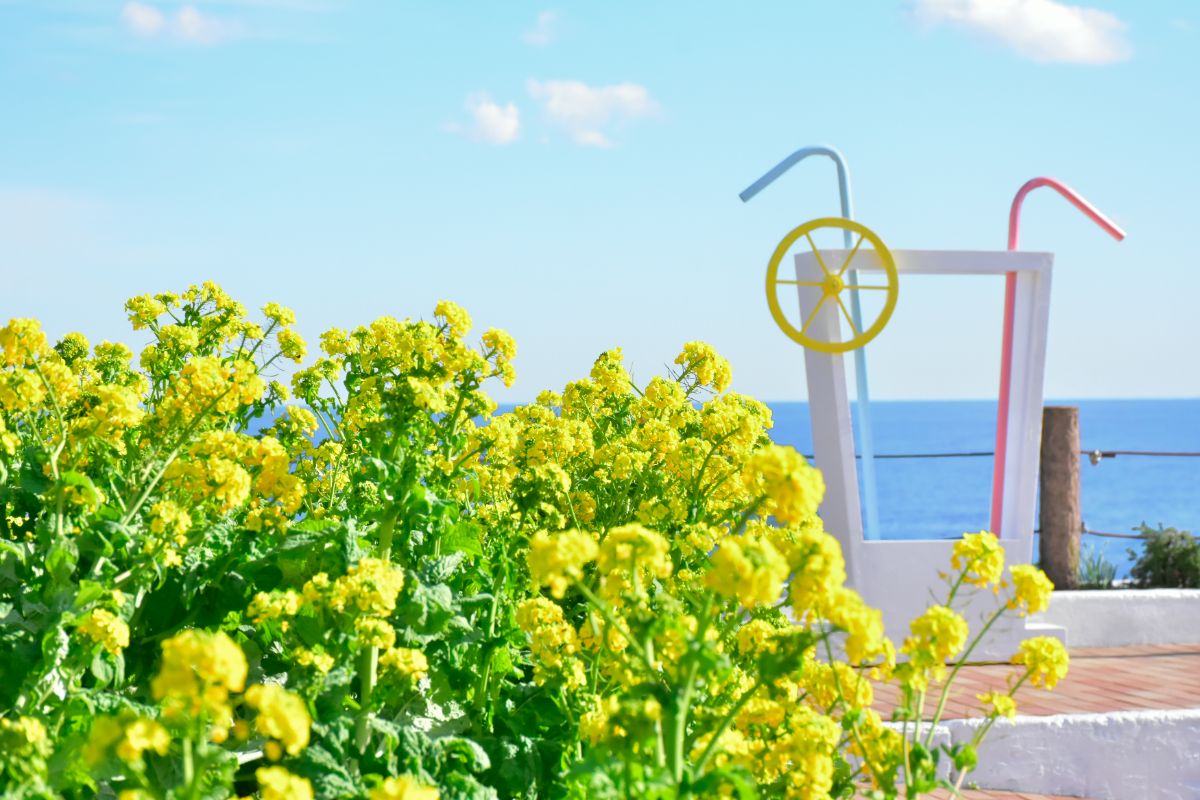 花を見る機会が減る冬のシーズンですが、12月中旬からは、菜の花が青い海をバックに花開きます。伊豆で春を先取りしましょう。