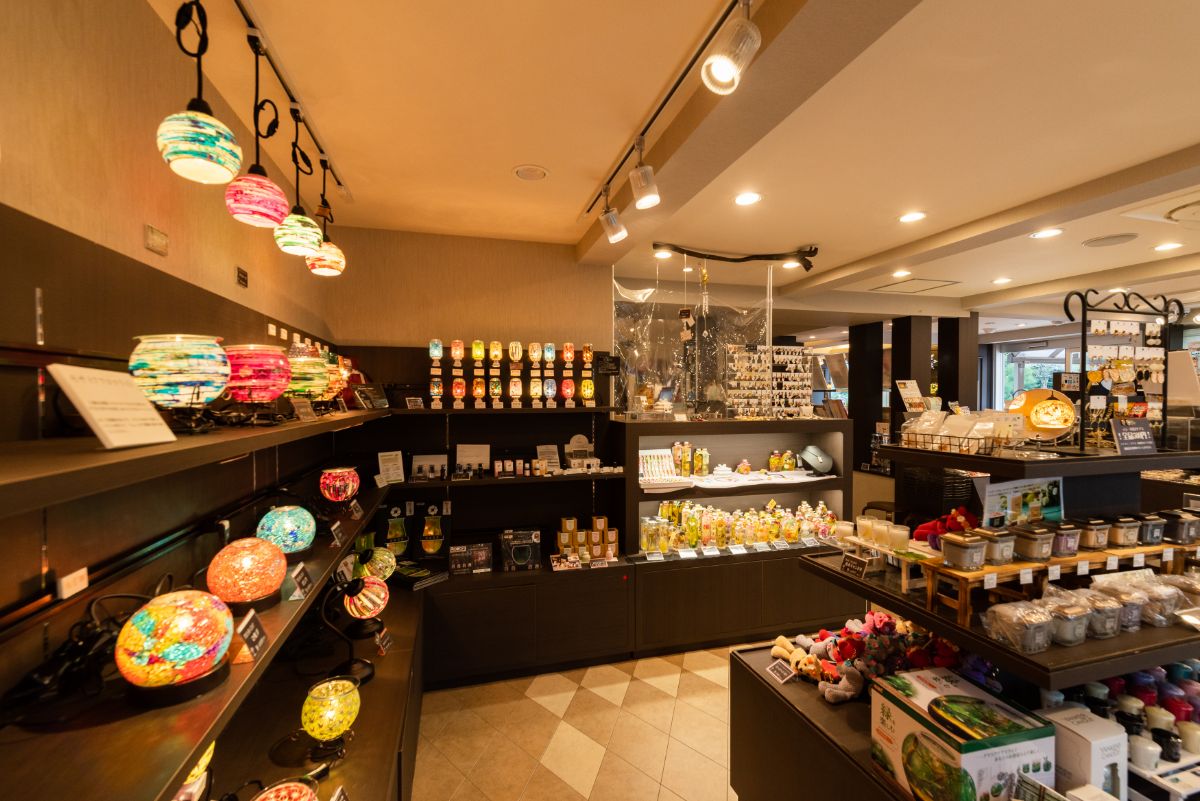お腹も心も満たされたあとは、ショップを覗いてみましょう。花をモチーフにした雑貨や、癒やしと灯りをテーマに取り揃えられた品々は、家に帰ってからも私たちを楽しませてくれるものばかり。