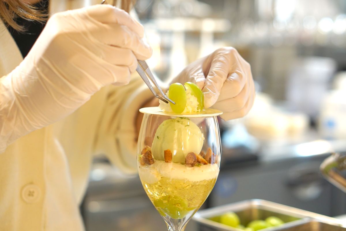 その場で美しく盛り付けられていくパフェやドリンクの数々に思わず見とれてしまいます。