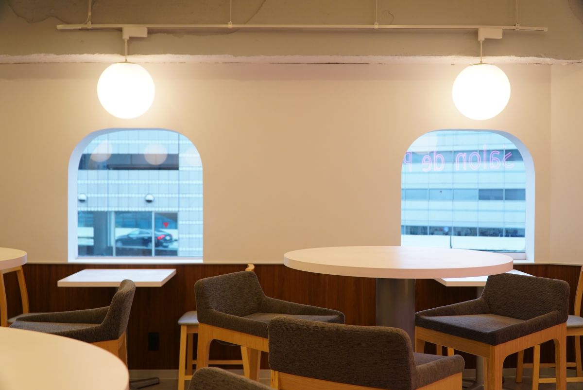 角の丸い形にくり抜いた窓と、丸い照明が絶妙にマッチする窓際席がとってもキュート。センスのいいインテリアの店内はどこで写真を撮っても写真映えしますよ。