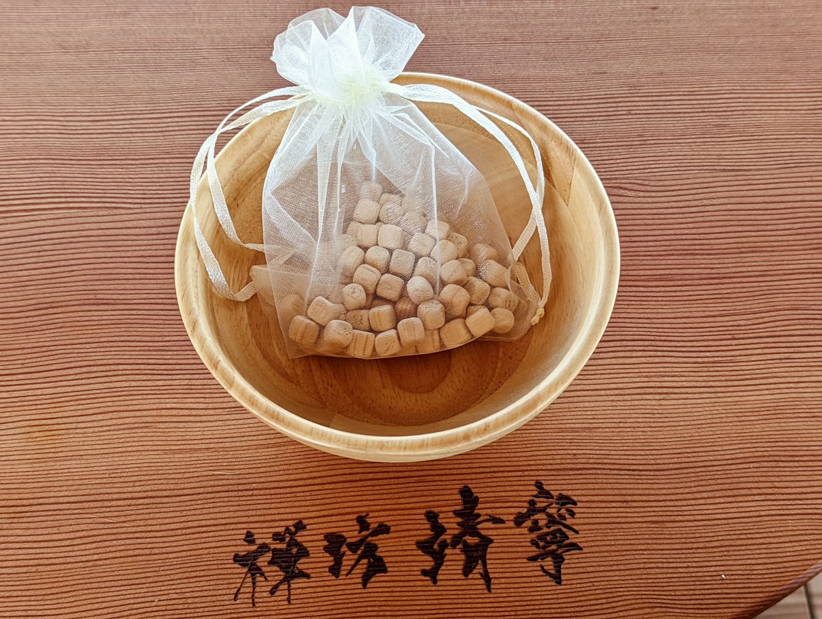 ここで登場したのが、アロマチップを包んだ香りの袋。これを鼻下に持っていき、大きく息を吸い込みます。「禅坊 靖寧」オリジナルの「ZEN 香」体験です。